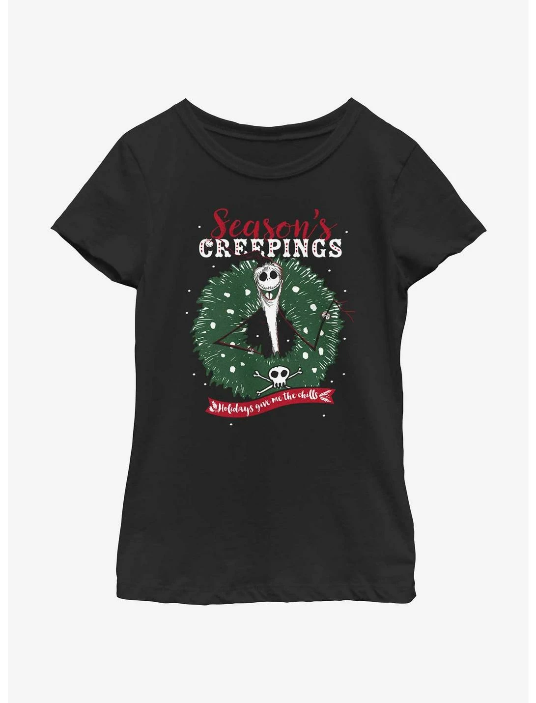 HER Disney The Nightmare Before Christmas Santa Jack Season’s Creepings Wreath Youth Girls T-Shirt