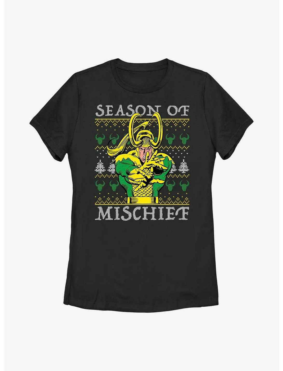 HER Marvel Loki Mischief Season Ugly Christmas Womens T-Shirt