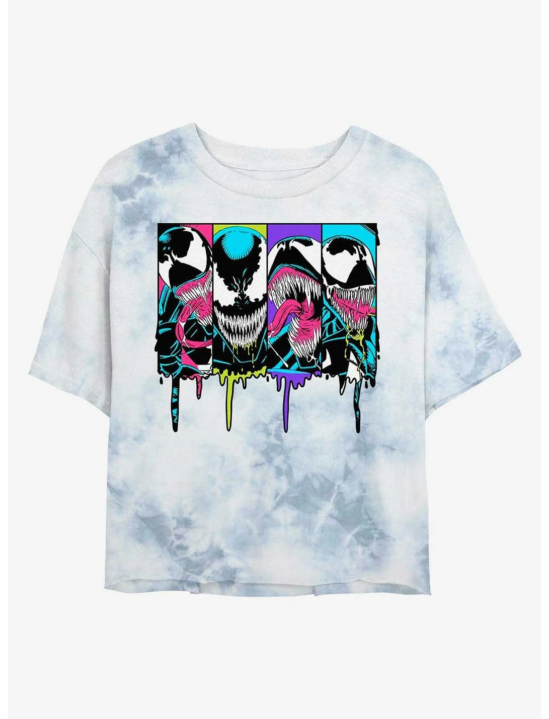 HER Marvel Venom Neon Drip Womens Tie-Dye Crop T-Shirt