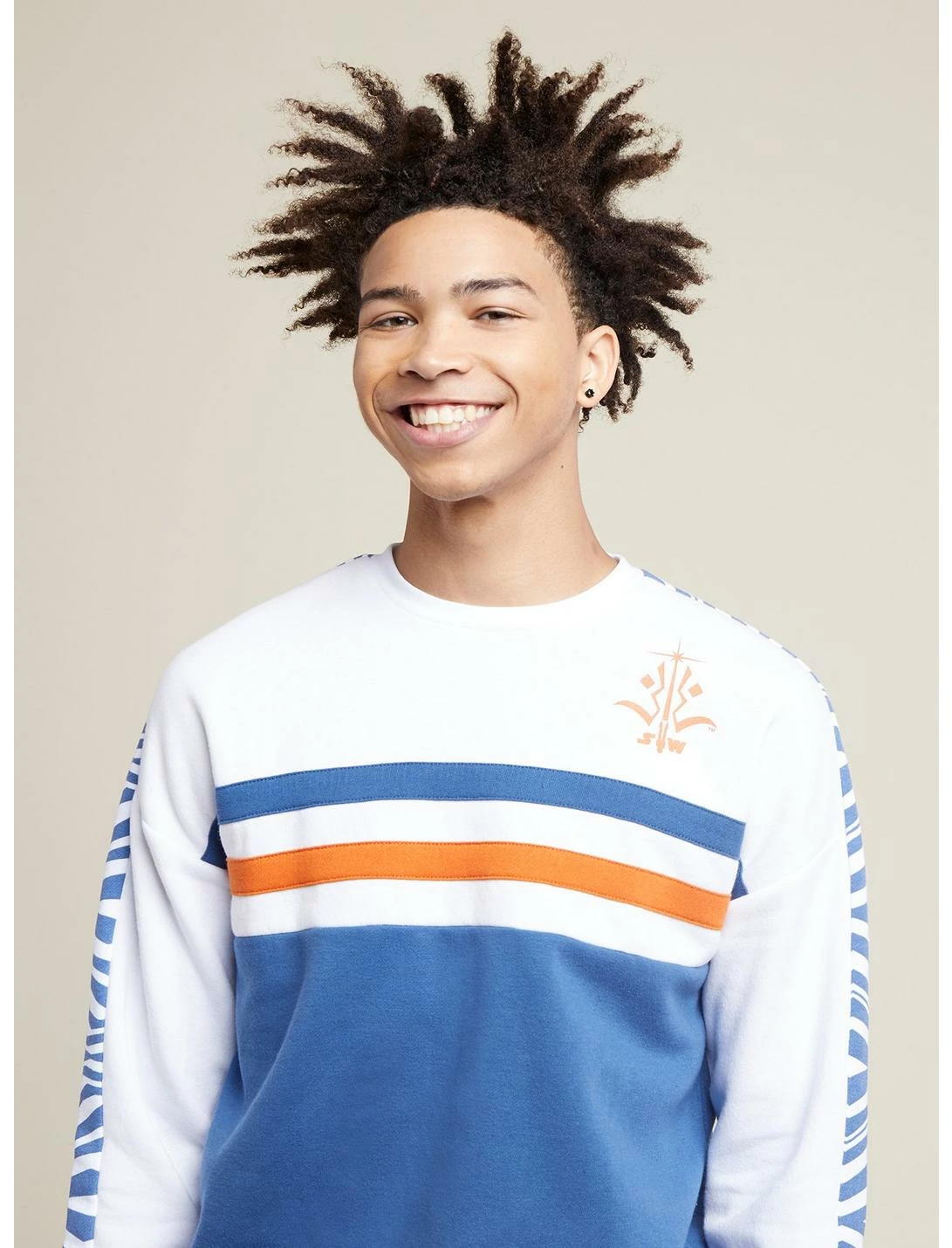Rep your fave Jedi while staying cozy with this Ahsoka Tano-inspired sweatshirt from Star Wars. Printed down the sleeves with the pattern from her montrals, on the chest with the logo, with appliqued stripes on the front and back and her name in puff print across the shoulders.