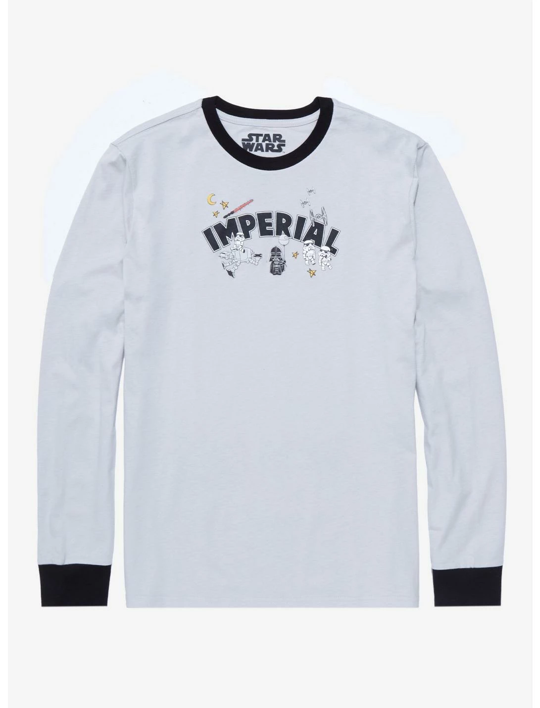 You can channel your inner Sith with this Star Wars-inspired long sleeve from Our Universe! Features chibi versions of Darth Vader, stormtroopers, and more classic characters surrounding “Imperial” puff print lettering, making for the perfect style addition to harness the power of the dark side.